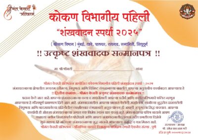 तृतीय क्रमांक – श्री. सुभाष चिमाजी पाठक – श्रेष्ठ शंखवादक प्रमाणपत्र